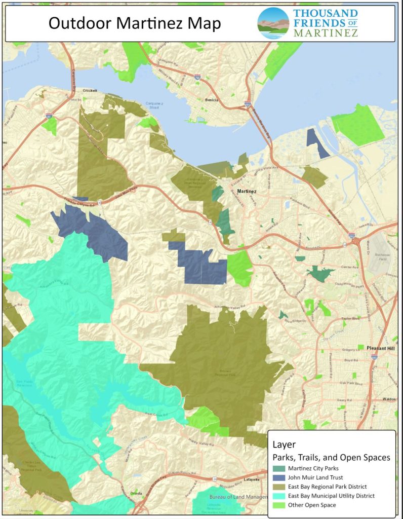 Thousand Friends of Martinez has long believed that Martinez’ future lies in branding the city as a parks, trails and open space mecca, while attracting increasing numbers of visitors. To help with economic development efforts, we’re creating an “Outdoor Martinez” map to expand on that branding opportunity that Martinez is a parks and open space gateway.